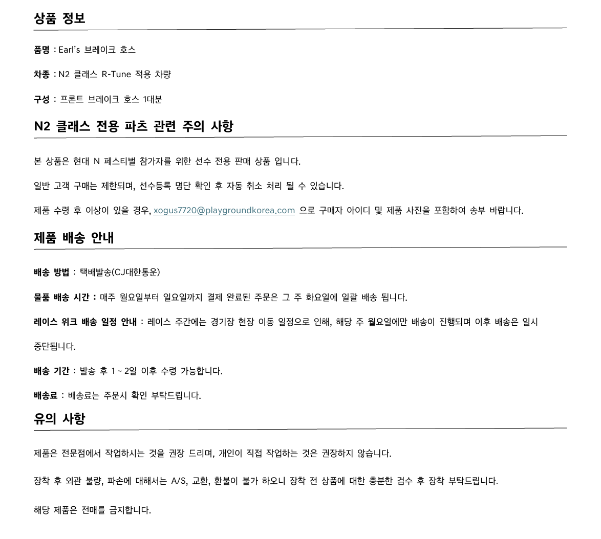 (N2 CLASS) Earl's 브레이크 호스
